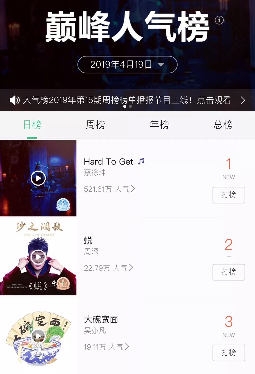 在QQ音乐日打榜上人气超过吴亦凡
